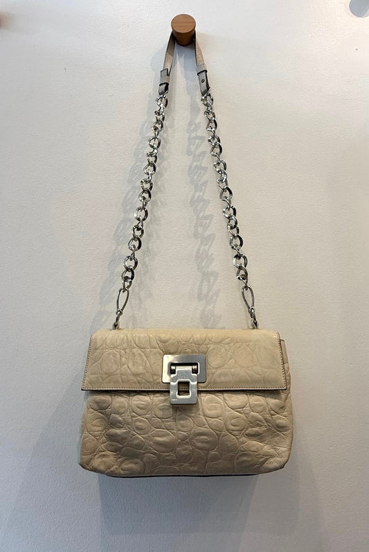 ALBERTA DI CANIO CREAM PEBBLED LEATHER PURSE