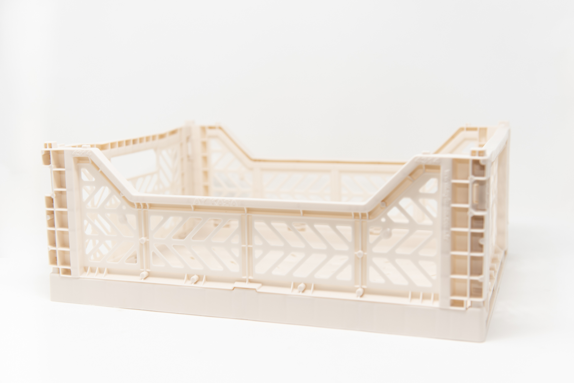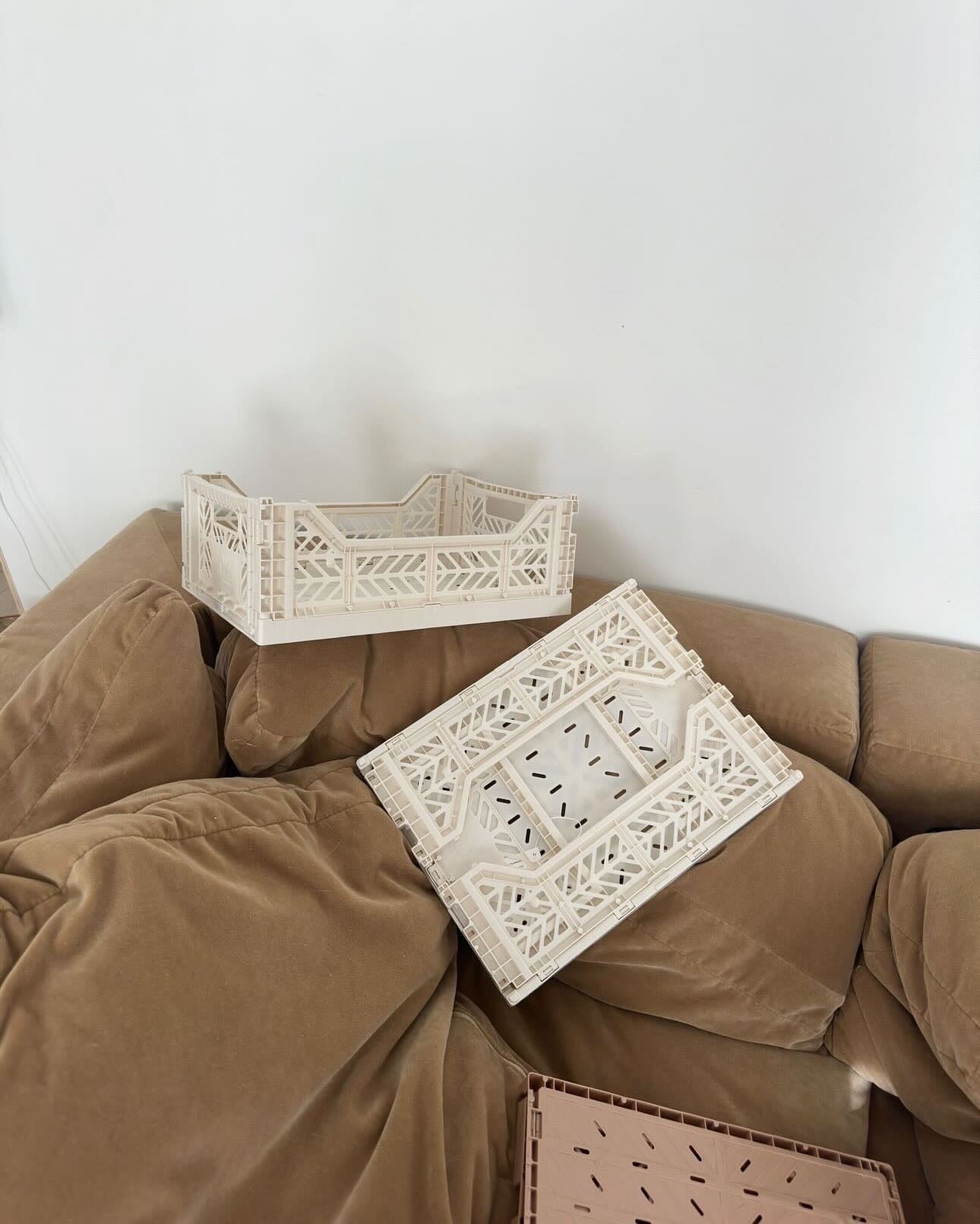 The Midi Crate measures 15.75”L x 11.81”W x 5.71"H when opened and folds down to only 1“ for storage.