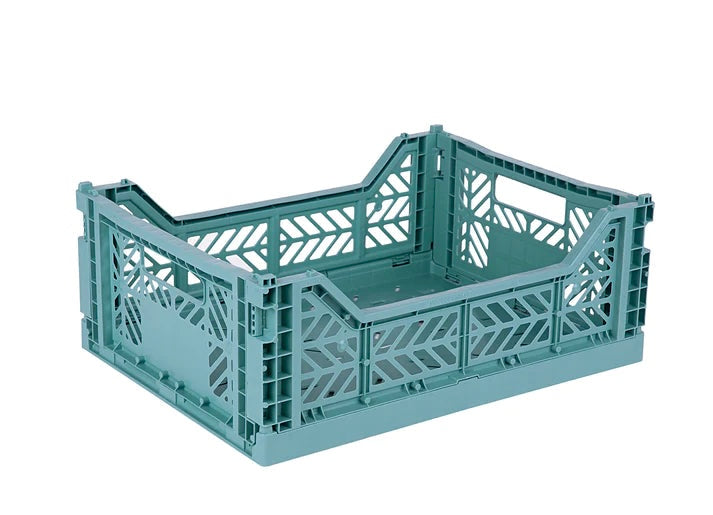 The Midi Crate measures 15.75”L x 11.81”W x 5.71"H when opened and folds down to only 1“ for storage.