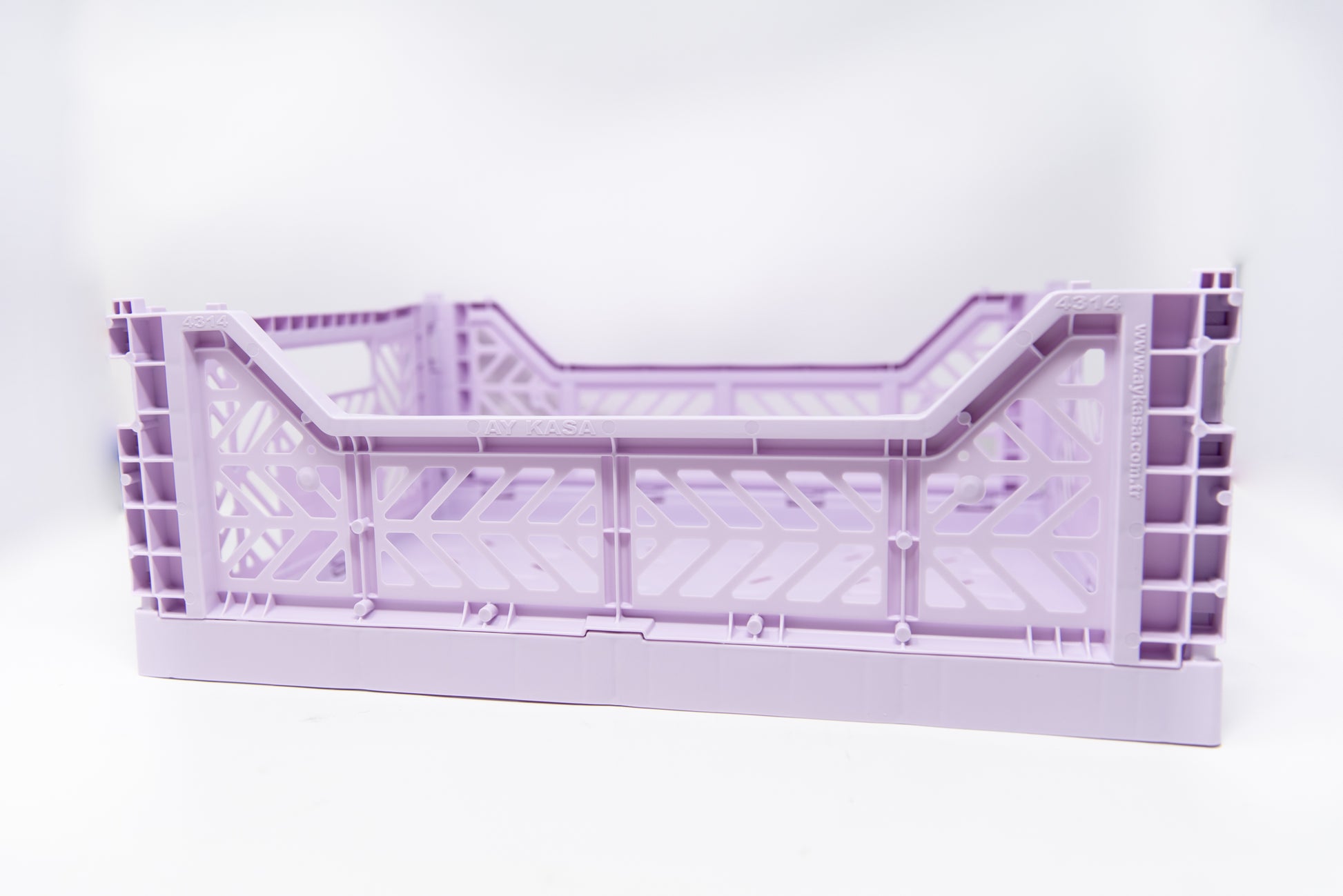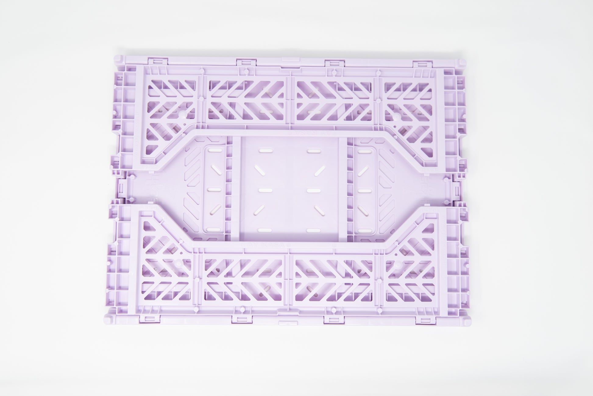 The Midi Crate measures 15.75”L x 11.81”W x 5.71"H when opened and folds down to only 1“ for storage.