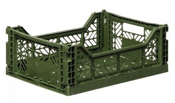 The Midi Crate measures 15.75”L x 11.81”W x 5.71"H when opened and folds down to only 1“ for storage.