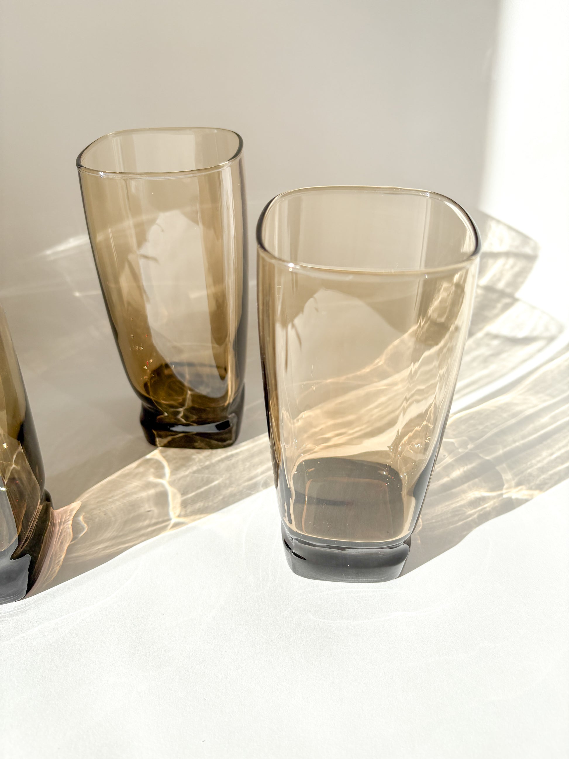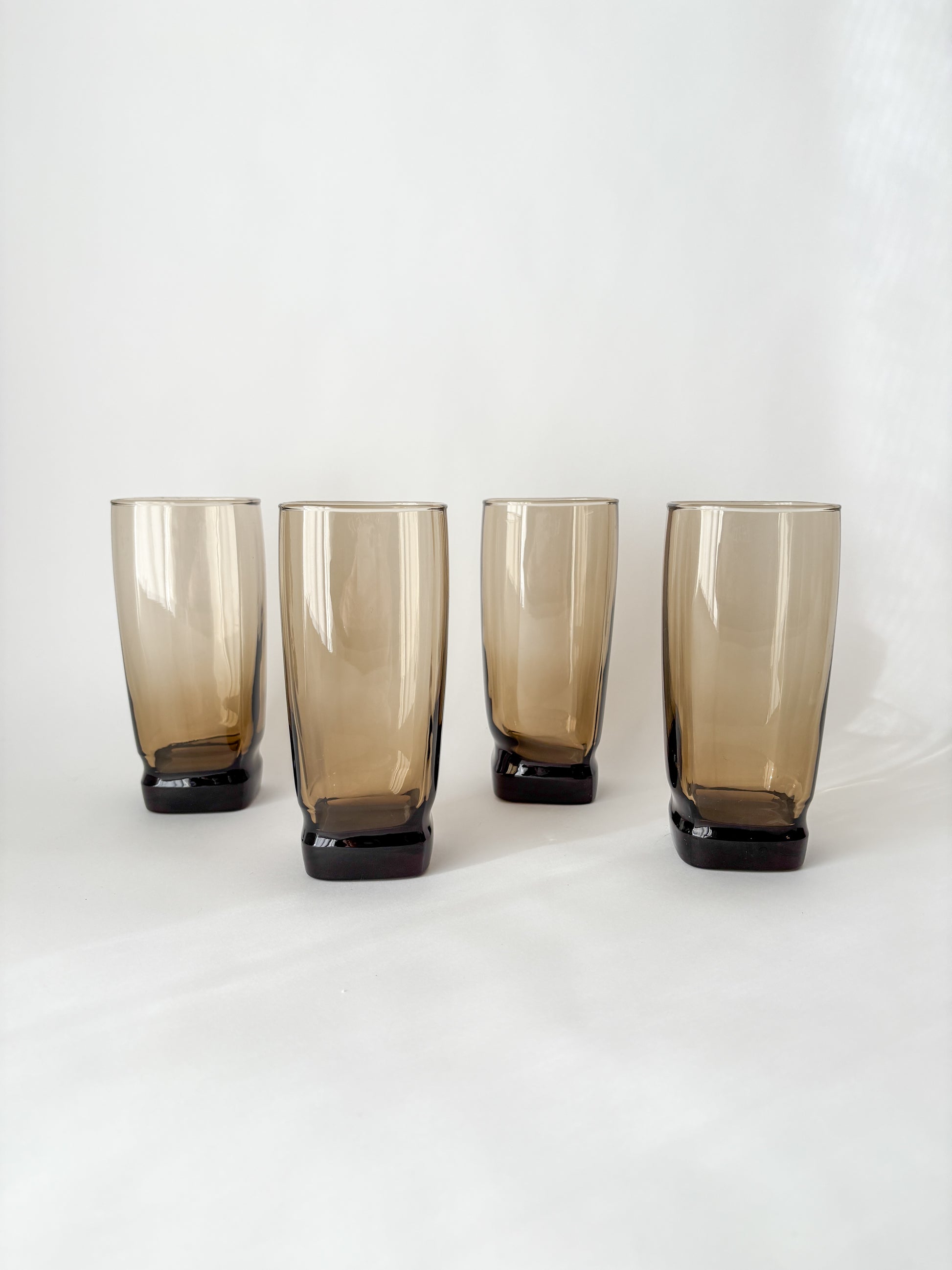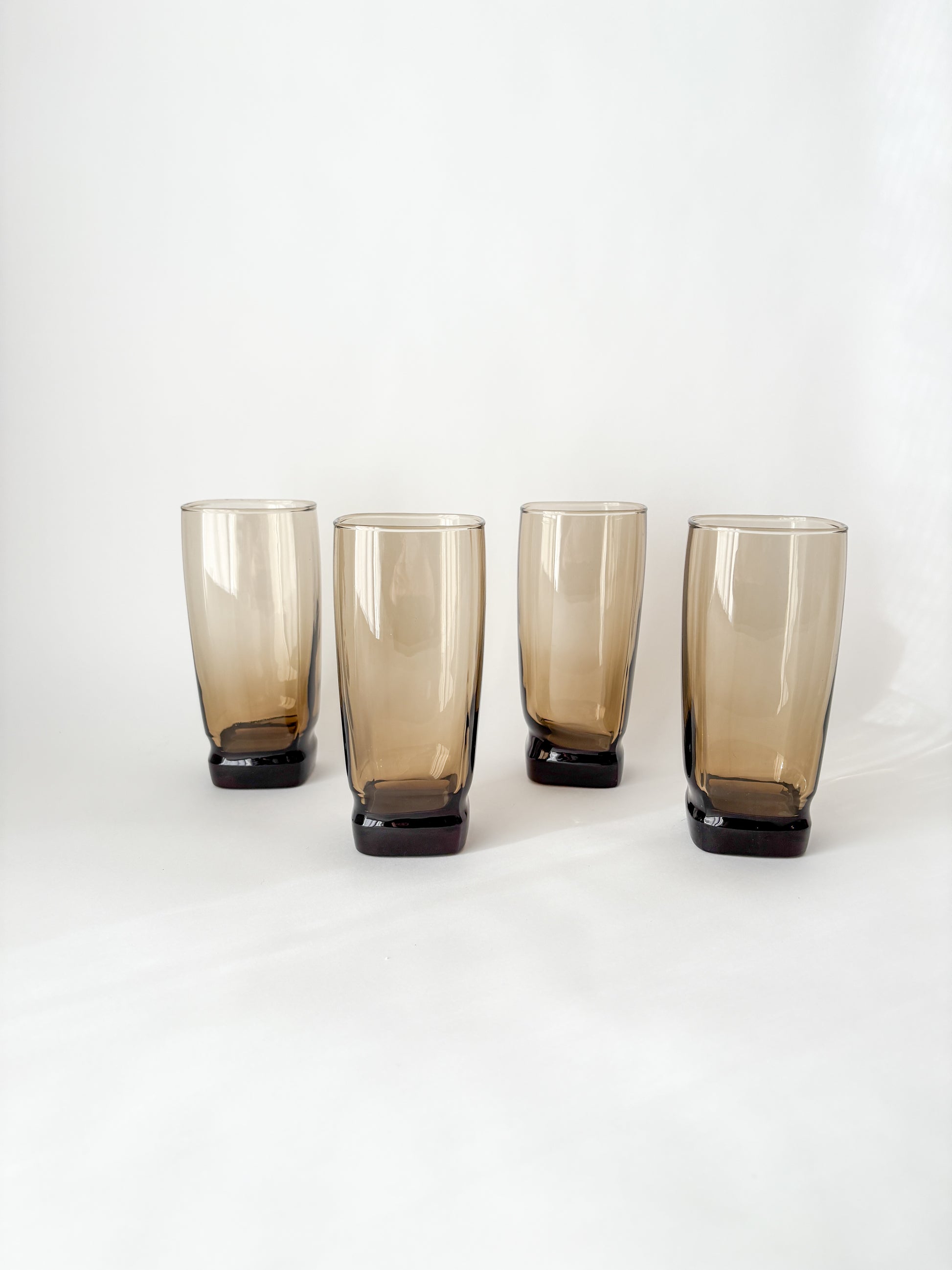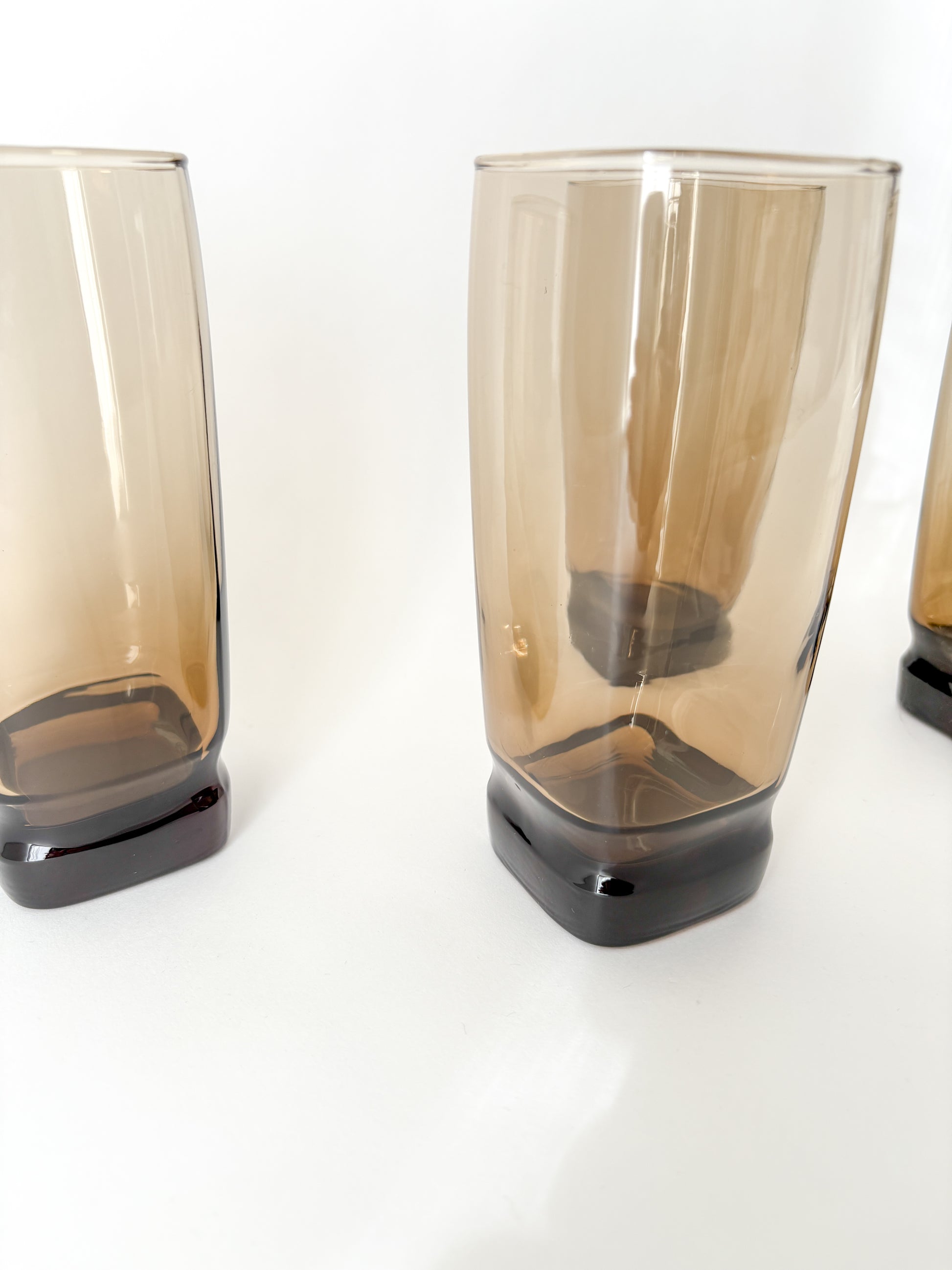 MCM set of 4 vintage Libbey Carrington square tawny tall glass cups from the 1970s.