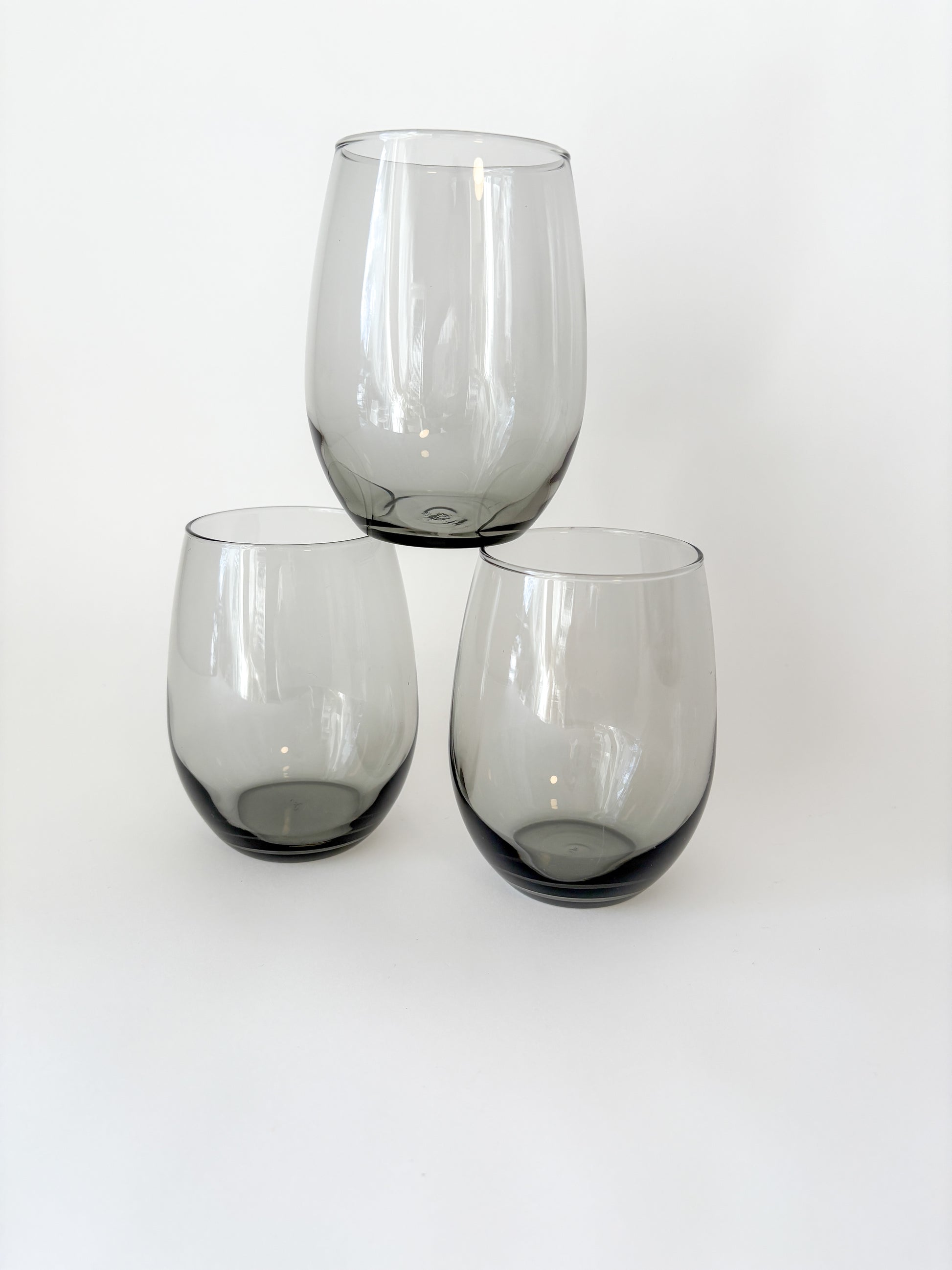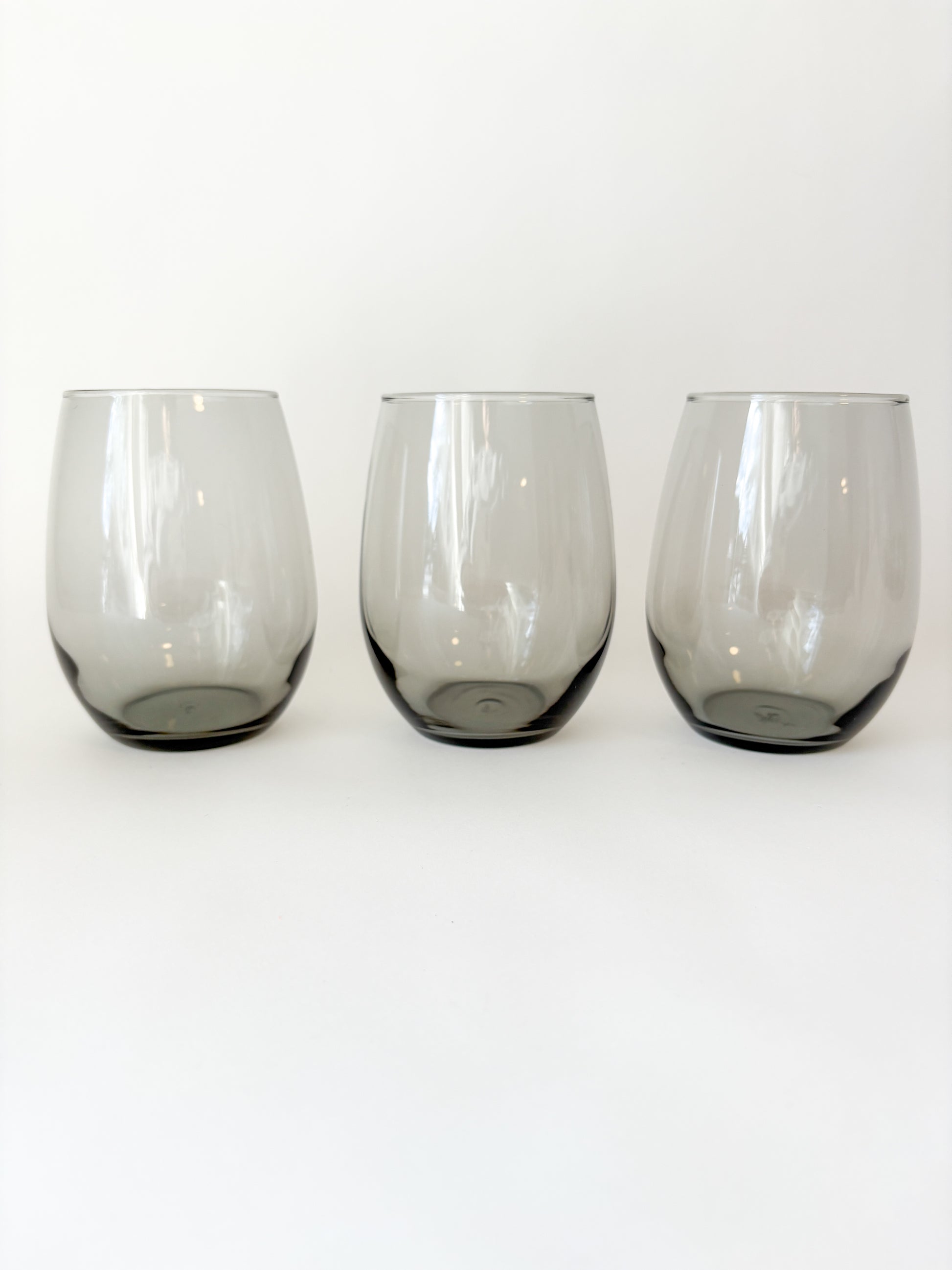 Vintage Libby large smoked cups/stemless wine glasses - set of 3. A perfect addition to your barware or cup collection!